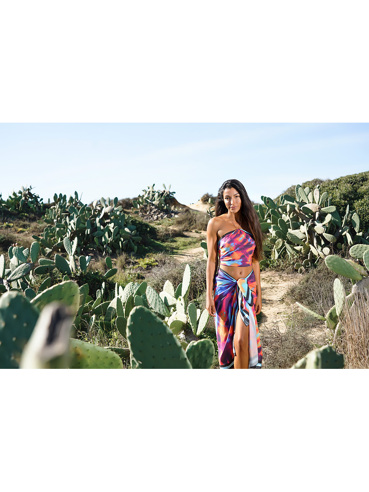 They have a fine, silky fabric that is very comfortable to wear and are slightly elastic, making them easy to tie. The garments are very delicate, elegant and modern. The yokes are great for wearing as a blouse, a short skirt or as a headscarf. They are very versatile and can be worn on a wide variety of occasions.