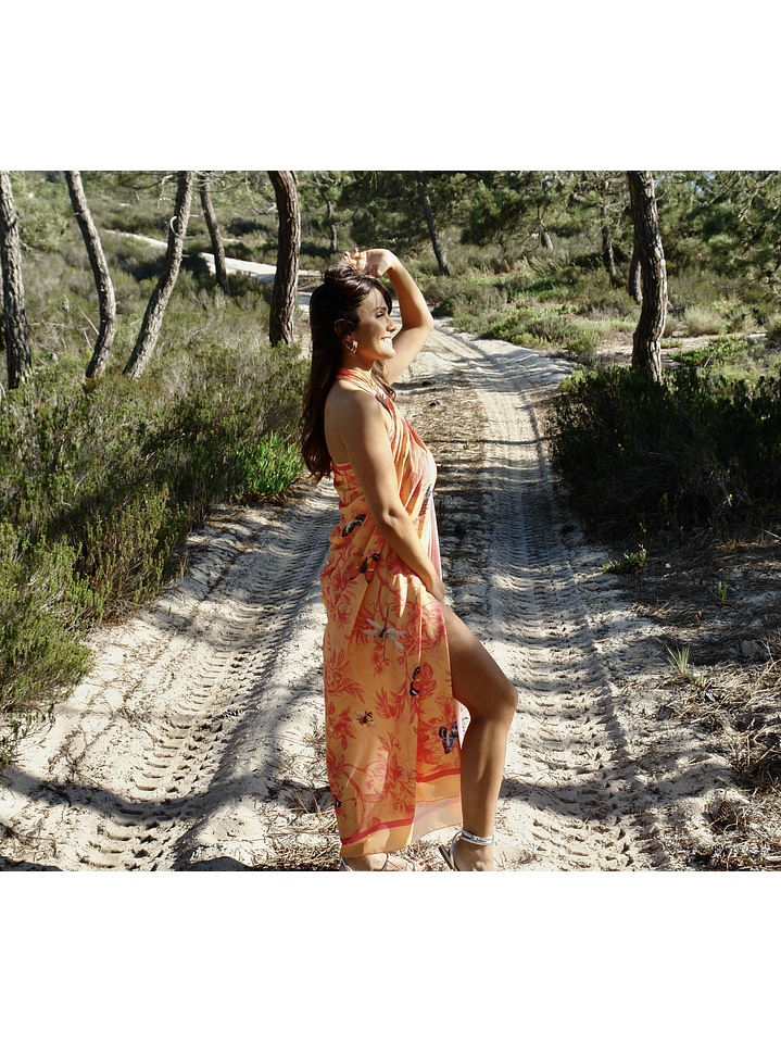 Serene Symphony of Insects is a poem of nature, where the delicacy of insects and the freshness of leaves and flowers intertwine in perfect harmony. When you wrap yourself in this piece, feel embraced by serenity and the calm rhythm of life, perfect for a more discreet woman.