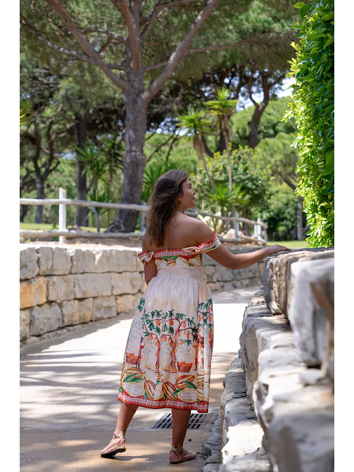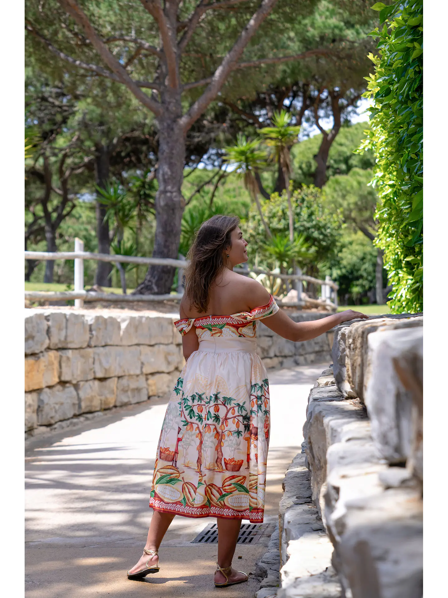 Vestido midi com decote e mangas cai cai, fecho de correr invisível nas costas e possui forro com toque sedoso em toda a peça. Tem três pregas nas mangas que dão-lhe um toque especial e a saia é rodada.